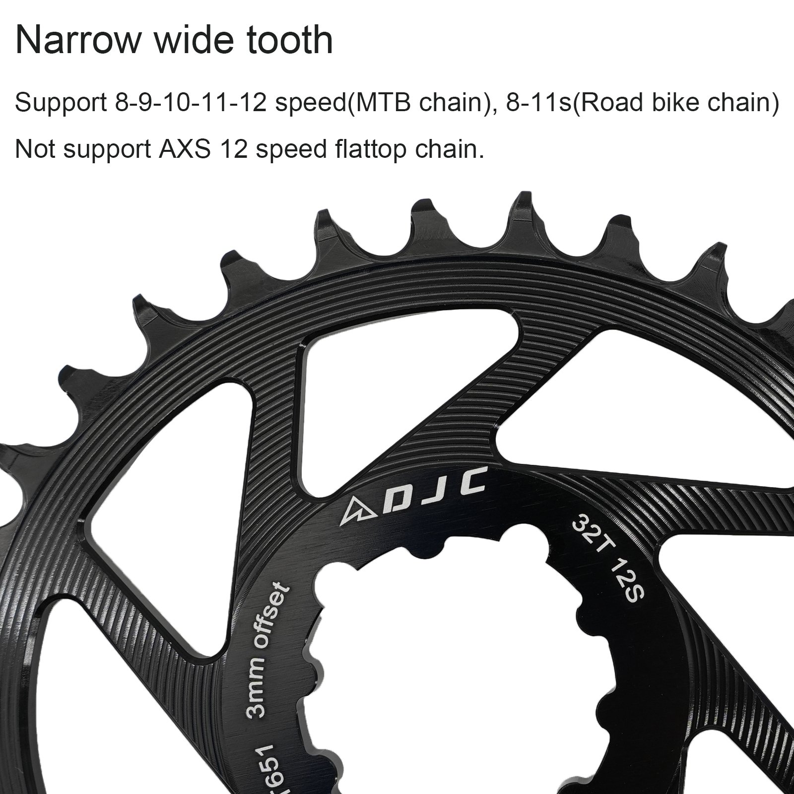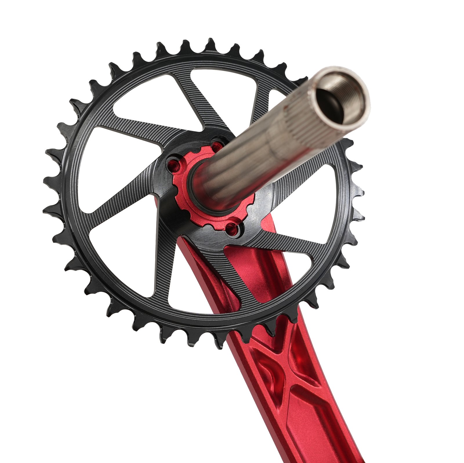 Shape Tooth Design: This chainring features an alternating narrow and wide tooth pattern, which effectively reduces chain wear, minimizes vehicle load, and prevents chain drops during rides.The sharp tooth design of the chainring helps reduce mud and debris buildup in the chain.
